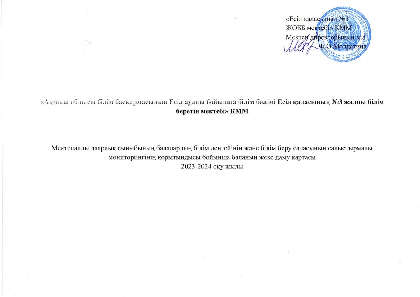 Білім беру ұйымы : «Есіл қаласының №3 жалпы орта білім беретін мектебі» КММ
