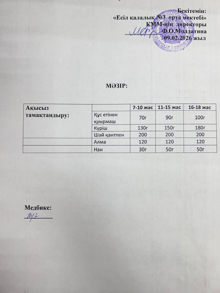 школа № 3 города Есиль отдела образования по Есильскому району