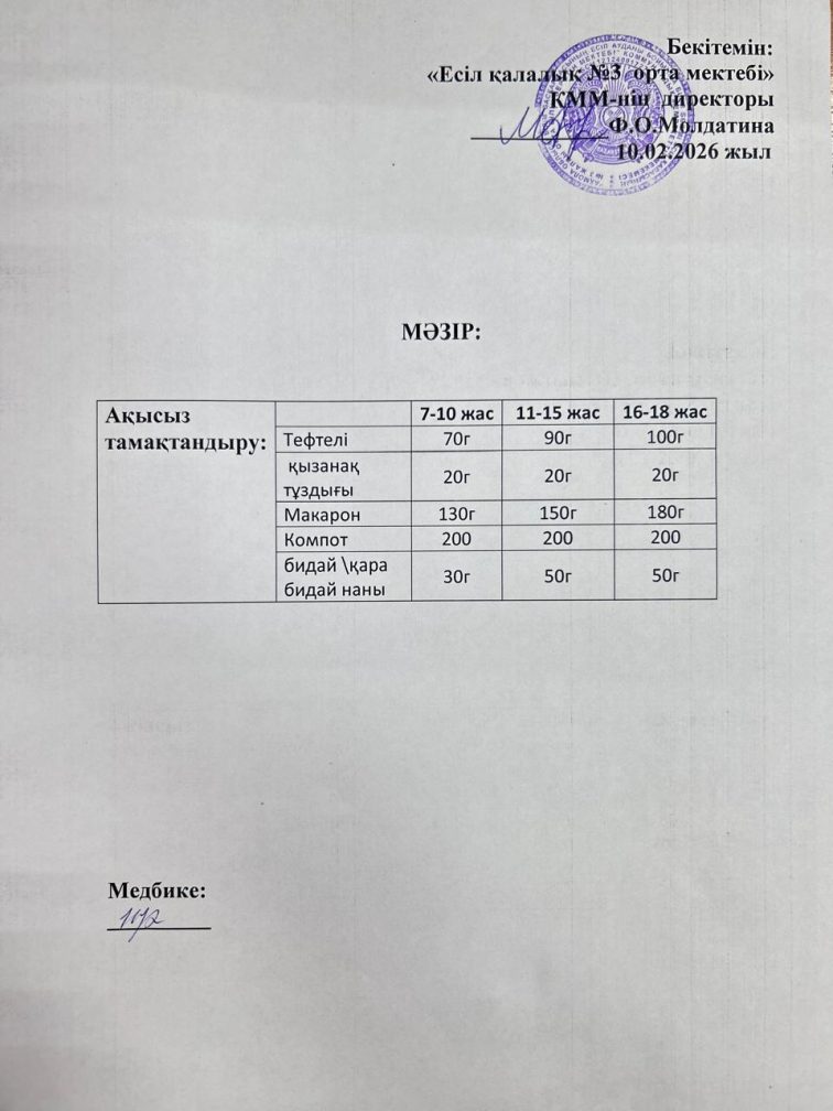 Ас мәзірі 10.02.2026 ж