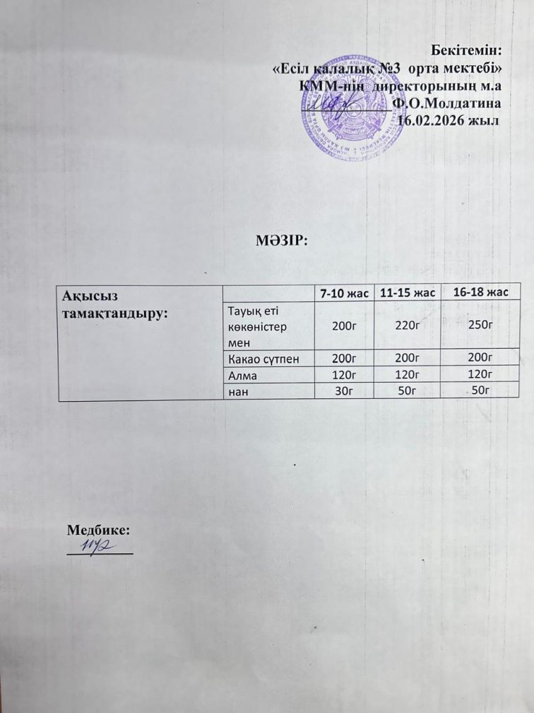Ас мәзірі 16.02.2026 ж