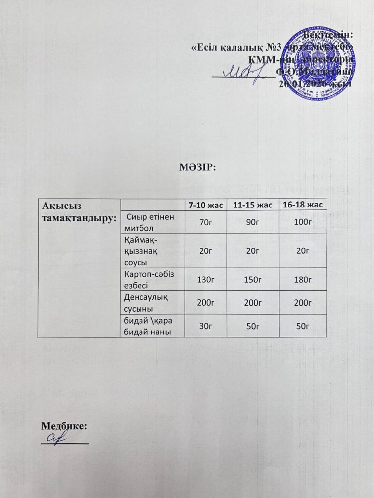 Ас мәзірі 20.01.2026 ж