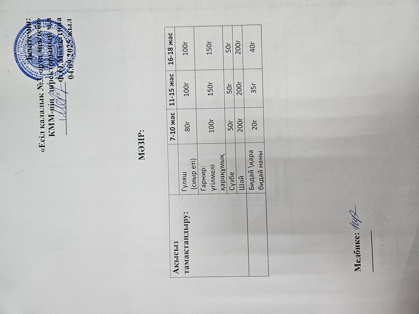 Ас - мәзірі 04.09.2025 жыл